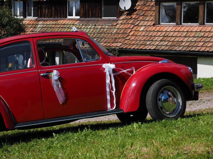 Keywords: vw beetle bridal car auto oldtimer vw vehicle classic old volkswagen red wedding car bridal cars loop beetle cabriolet convertible car body shape pkw open lights spotlight blinker bumper wheel rim
