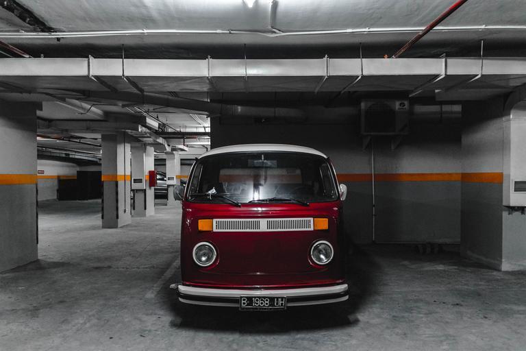 Keywords: vw volkswagen bus parking underground parking parked vw automobile vehicle van