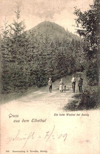 Keywords: Vysoky-ostry-teweles.gif Cesta na Vysoký Ostrý Kunstverlag A Teweless Aussig 1900 A Teweles Brná nad Labem History of Ústí nad Labem Vysoký Ostrý Postcards of Bohemia before 1918 PD-old