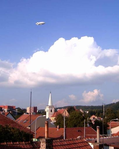 Keywords: Vzducholod7725.JPG en city Brno Komín cs Brno Komín vzducholoď nad kostelem own I Sáček senior Brno-Komín