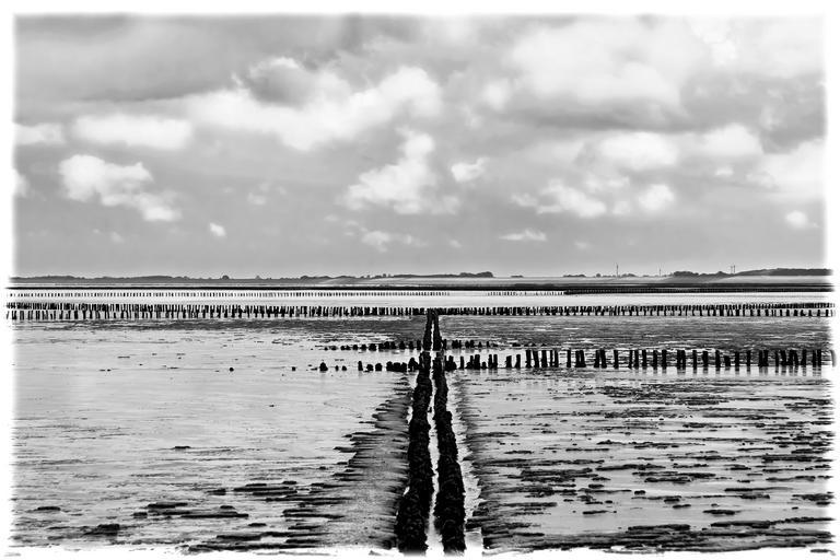| Keywords: wadden sea water beach piles north sea sea ebb watts sky nature light horizon sand schlick watt worm pile sand watt gloss low tide bank holiday intertidal zone risk sandworms coasts nordfriesland threatening mudflat hiking national park evening sun black and white |
