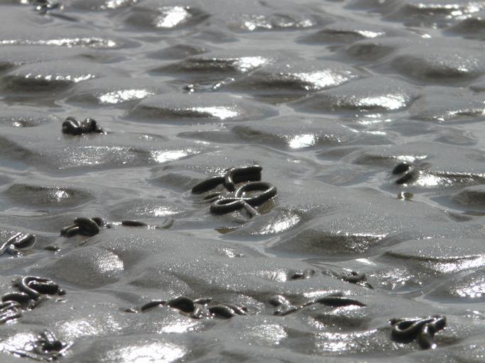Keywords: wadden sea watts north sea schlick sand water gloss sparkle back light intertidal zone coasts low tide sand watt watt worm pile sandworms