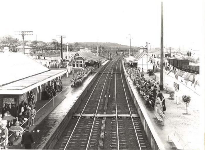 | Keywords: archives state records nsw staterecordsnsw newsouthwales blackandwhite spectators people platform railwaytracks railwaystation crowds wyong central coast centralcoast royal visits royalvisits geotagged geo:lon=-33.286 geo:lon=33286 geo:lat=151.4252 geo:lat=1514252 road sport architecture infrastructure building building structure outdoor black and white Crowds awaiting the arrival of Queen Elizabeth II onboard the royal train at Wyong Railway Station Dated: 9 February 1954 Digital ID: 17420_a014_a014000166 Rights: www.records.nsw.gov.au/about-us/rights-and-permissions We'd love to hear from you if you use our photos. Many other photos in our collection are available to view and browse on our website using Photo Investigator. Crowds awaiting the arrival of Queen Elizabeth II onboard the royal train at Wyong Railway Station Dated: 9 February 1954 Digital ID: 17420_a014_a014000166 Rights: www.records.nsw.gov.au/about-us/rights-and-permissions We'd love to hear from you if you use our photos. Many other photos in our collection are available to view and browse on our website using Photo Investigator. |