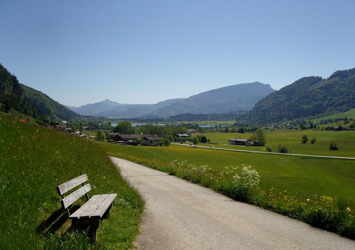 Keywords: walchsee landscape outlook austria meadow on the go hiking nature walk away road