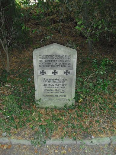 Keywords: Waldfriedhof Schloss Neuhaus-Gedenkstein Wecker.JPG de Gedenkstein Wecker auf dem Waldfriedhof in Schloß Neuhaus own Athde 2011-10-18 Cc-zero de Images from Wiki Loves Monuments 2013 DE-NW Waldfriedhof Schloß Neuhaus World War I memorials in North Rhine-Westphalia German inscriptions in Paderborn WWI related images from Wiki Loves Monuments 2013 |