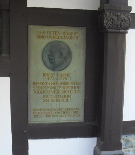 Keywords: Waldfriedhof Schloss Neuhaus-Gedenktafel Josef Temme.jpg de Waldfriedhof Schloß Neuhaus Gedenktafel für Josef Temme an der Friedhofskapelle own Athde 2011-10-16 Cc-zero Waldfriedhof Schloß Neuhaus People of Paderborn Temme Josef Memorials in Paderborn |