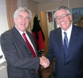 | Keywords: Wales morgan and amb.jpg First Minister of Wales Rhodri Morgan and Ambassador Tuttle meet in w Cardiff http //www usembassy org uk/ukamb/tuttle018 html U S Embassy to the United Kingdom 2005-10-07 PD-USGov October 2005 in the United Kingdom 2005 in Cardiff Men looking at viewer handshakes Rhodri Morgan Robert H Tuttle |