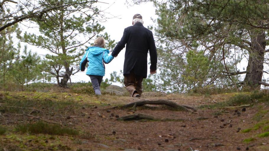 Keywords: walk family father child nature more forest leisure community hand in hand relationship hiking go