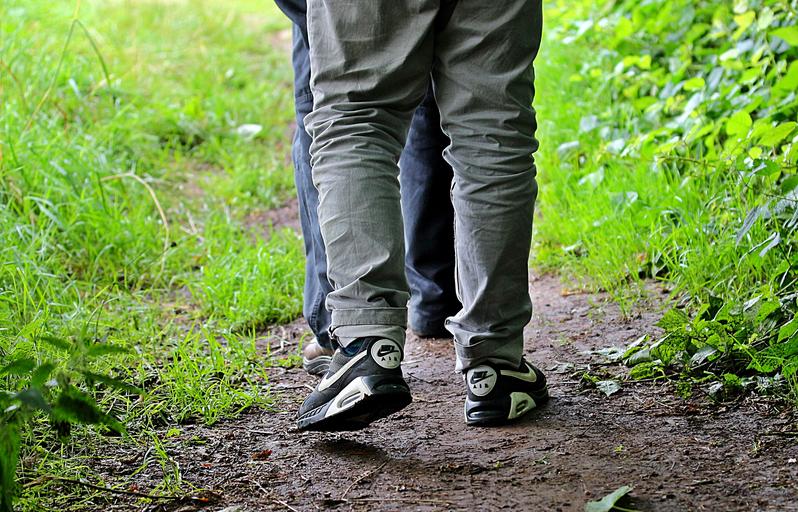 Keywords: walk go go for a walk away promenade for two together hiking grass step shoes legs in the clock movement nature out