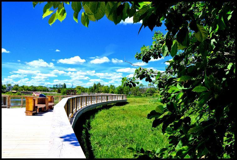 Keywords: walkway boardwalk nature path summer greenery attraction wooden place rest holiday