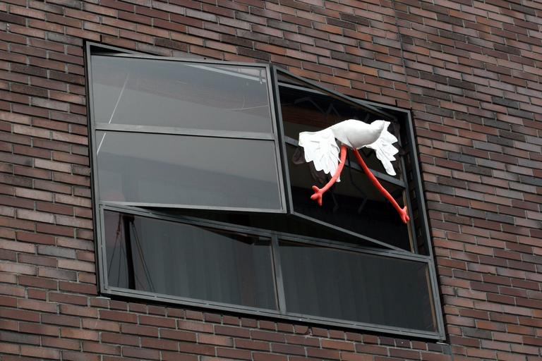 Keywords: wall amsterdam netherlands street scene center stork pregnant born window windows