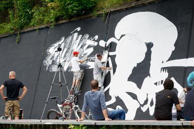Keywords: wall artists sprayer graffiti art viewers movie recording