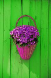 Keywords: wall basket flowers decoration rustic decorative background wooden