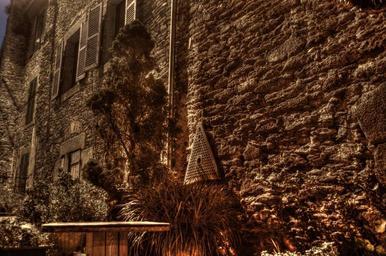 Keywords: wall facade bricks stones old former night light