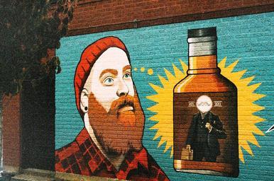 Keywords: wall paint graffiti man orange beard hat toque plaid hipster alcohol booze whiskey