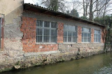 Keywords: wall window old grate grid stone stone wall structure bricked bricks square home brick wall build masonry stacked up facade water bach river