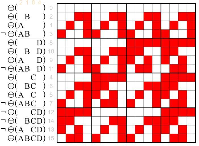 Keywords: Walsh arg 2 1 8 4 neg 0001 0001 0001 1110 b.svg Modified binary Walsh matrix of order 16 own Lipedia Mate2code; files for deletion