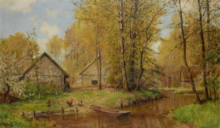 Keywords: Walter Moras - Häuser an einem Spreewaldkanal.jpg Artwork Creator Walter Moras oil canvas cm 59 99 object history credit line W Moras ~ lower right signature accession number http //www bonhams com/auctions/19782/lot/136/ Bonhams London 19 June 2012 Lot 136 PD-old-auto-1923 1925 Walter Moras Landscape paintings of Germany Spreewald in art Images from Bonhams |