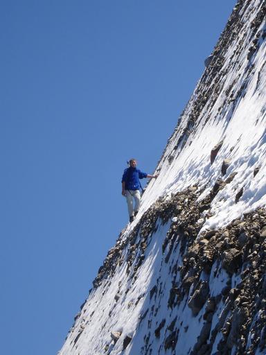 Keywords: wanderer trail mountain mountains path sidewalk winter steep steepness snow ice rock exposed climbing steep wall climb climber extremely bergtour hike mountain hike daring extreme sports
