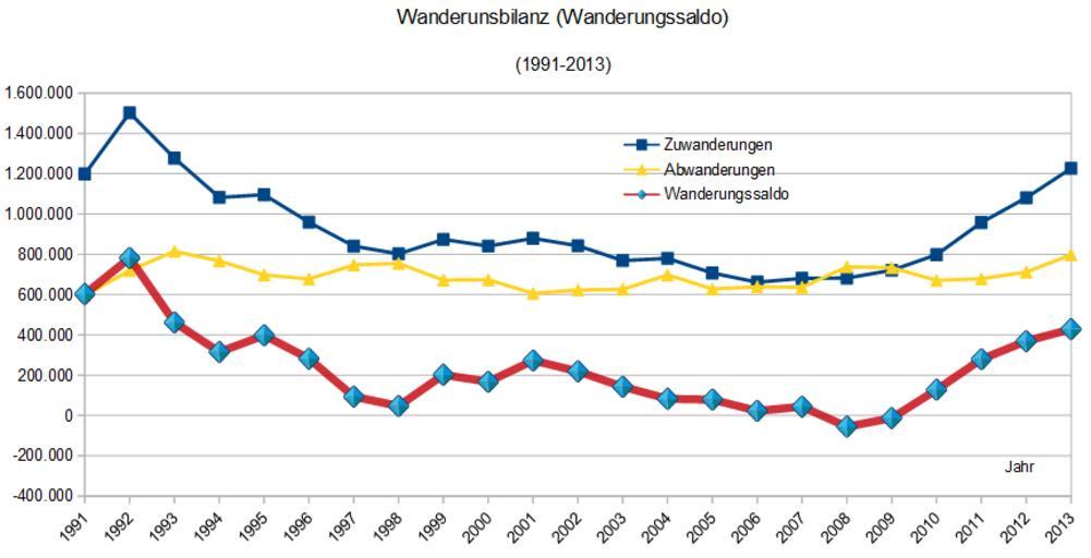 Keywords: Wanderungsbilanz 1991-2013.png de Wanderungsbilanz own Bova 2015-03-10 De wanderung svg Cc-zero Migration statistics Demographics of Germany