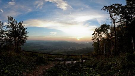 | Keywords: Wanfried Panorama edit.tif Panoramablick von der Plesse mit Bank und Geländer vor dem Plesseturm bei Sonnenuntergang Im Tal zu sehen die nordhessische Kleinstadt Wanfried Direkt unter der Sonne zu sehen der große und kleine Leuchtberg rechts davon ein Teil des Werratalsees Panoramic view from Plesse including park bench and handrail in front of the Plesse tower during sunset The valley shows the city of Wanfried in northern Hesse Germany Right beneath the sun the great and small Leuchtberg on the right of them parts of the Werratalsee are visible Christoph Braun own creation 18 10 2010 Christoph Braun Retouched picture edited using Adobe Photoshop CS5 and its RAW converter levels adjusted overall sharpness increased content aware fill used to fill edges colour balancing Christoph Braun Created with Hugin Canon EOS 5D Mark II manual 1/4 f/22 Exposure compensation 100 EF 16-35mm f/2 8L II USM Focal length 16mm Focal length 35mm 51 1905 10 196407 region DE Plesse Wanfried Sunsets of Hesse Files by Christoph Braun |