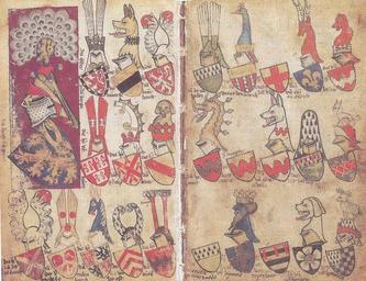 | Keywords: Wapenboek Heraut van Gelre.jpg Wapenboek Gelre met wapens van Gelre Bronckhorst Baer Culemborg http //www mijngelderland nl/beeld/Canons/Gelderland/06 02_a_Wapenboek_Heraut_van_Gelre jpg mijngelderland nl between 1395 - 1402 Claes Heinenzoon PD-old-100 ImageNote 1 263 2 103 322 1200 923 2 Bergh ImageNoteEnd 1 ImageNote 2 460 34 126 292 1200 923 2 Bronckhorst ImageNoteEnd 2 ImageNote 3 265 322 100 291 1200 923 2 Zuylen ImageNoteEnd 3 ImageNote 4 23 22 238 598 1200 923 2 Reinald II van Gelre ImageNoteEnd 4 ImageNote 5 472 328 108 277 1200 923 2 Baer ImageNoteEnd 5 ImageNote 6 366 322 103 291 1200 923 2 Gennep ImageNoteEnd 6 ImageNote 7 266 614 105 308 1200 923 2 Culemborg ImageNoteEnd 7 ImageNote 8 366 614 109 305 1200 923 2 Voorst ImageNoteEnd 8 ImageNote 9 20 617 146 302 1200 923 2 Batenburg ImageNoteEnd 9 ImageNote 10 166 623 97 295 1200 923 2 Borculo ImageNoteEnd 10 ImageNote 11 474 612 103 305 1200 923 2 Buren ImageNoteEnd 11 ImageNote 12 366 12 91 306 1200 923 2 Meurs ImageNoteEnd 12 Coats of arms of the Netherlands Coats of arms of the Holy Roman Empire Gelre Armorial Coats of arms of the House of Bronckhorst Coats of arms of Moers family Coats of arms of Bergh family Coats of arms of Gennep family Coats of arms of Zuylen family Coats of arms of Borculo family Coats of arms of Culemborg family Coats of arms of Voorst family Coats of arms of Buren family Or a cross gules 11 bezants in bordures Wapenboek Heraut van Gelre fol. 88 verso en fol. 89.jpg Wapenboek Gelre fol 88 verso en fol 89 met wapens van Gelre Bronckhorst Baer Culemborg http //www mijngelderland nl/beeld/Canons/Gelderland/06 02_a_Wapenboek_Heraut_van_Gelre jpg mijngelderland nl between 1395 - 1402 Claes Heinenzoon PD-old-100 ImageNote 1 263 2 103 322 1200 923 2 Bergh ImageNoteEnd 1 ImageNote 2 460 34 126 292 1200 923 2 Bronckhorst ImageNoteEnd 2 ImageNote 3 265 322 100 291 1200 923 2 Zuylen ImageNoteEnd 3 ImageNote 4 23 22 238 598 1200 923 2 Reinald II van Gelre ImageNoteEnd 4 ImageNote 5 472 328 108 277 1200 923 2 Baer ImageNoteEnd 5 ImageNote 6 366 322 103 291 1200 923 2 Gennep ImageNoteEnd 6 ImageNote 7 266 614 105 308 1200 923 2 Heer van Culenborch ministeriaal in het kwartier van Nijmegen A1 nr 7 ImageNoteEnd 7 ImageNote 8 366 614 109 305 1200 923 2 Voorst ImageNoteEnd 8 ImageNote 9 20 617 146 302 1200 923 2 Batenburg ImageNoteEnd 9 ImageNote 10 166 623 97 295 1200 923 2 Borculo ImageNoteEnd 10 ImageNote 11 474 612 103 305 1200 923 2 Heer van Buren oude adel C 13 ImageNoteEnd 11 ImageNote 12 366 12 91 306 1200 923 2 Meurs ImageNoteEnd 12 ImageNote 13 965 651 106 251 1200 923 2 Jan van Ubbergen ImageNoteEnd 13 ImageNote 14 609 306 151 309 1200 923 2 Jan II van Homoet ImageNoteEnd 14 ImageNote 15 746 8 106 308 1200 923 2 Gerard de Cock heer van Waardenburg ImageNoteEnd 15 ImageNote 16 628 8 112 300 1200 923 2 De heer van Broekhuisen ImageNoteEnd 16 ImageNote 17 852 312 114 291 1200 923 2 Seger van Groesbeek ImageNoteEnd 17 ImageNote 18 855 191 108 117 1200 923 2 Evert van Ulft ImageNoteEnd 18 ImageNote 19 963 6 102 303 1200 923 2 Herman van Eijle ImageNoteEnd 19 ImageNote 20 1071 6 115 300 1200 923 2 Arnoud van Lawick ImageNoteEnd 20 ImageNote 21 762 475 83 129 1200 923 2 Rogier van Lackmonde ImageNoteEnd 21 ImageNote 22 972 357 100 242 1200 923 2 Walter de heer van Vossem ImageNoteEnd 22 ImageNote 23 1078 608 118 314 1200 923 2 Heer Arnt van Hoemen Heumen ministeriaal in het kwartier van Nijmegen A1 nr 26 ImageNoteEnd 23 ImageNote 24 852 791 108 114 1200 923 2 Heer Jan van Myerlaer Mirlaer Meerlo oude adel C 26 ImageNoteEnd 24 ImageNote 25 742 617 109 289 1200 923 2 Beynum ImageNoteEnd 25 ImageNote 26 618 781 117 126 1200 923 2 Wickenrode ImageNoteEnd 26 ImageNote 27 1083 329 111 269 1200 923 2 Van Gent ImageNoteEnd 27 Coats of arms of the Netherlands Coats of arms of the Holy Roman Empire Gelre Armorial Coats of arms of the House of Bronckhorst Coats of arms of Moers family Coats of arms of Bergh family Coats of arms of Gennep family Coats of arms of Zuylen family Coats of arms of Borculo family Coats of arms of Culemborg family Coats of arms of Voorst family Coats of arms of Buren family Or a cross gules 11 bezants in bordures |