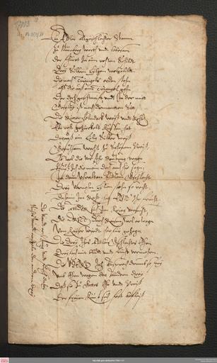 Keywords: Wappengedicht Nützel GNM 1.jpg Gedicht auf das Wappen der Familie Nützel abgegeben an GNM Archiv RSt Nürnberg XVIII Nützel Nr 29 <poem> Ein edler altgeschlechter Stamm Zu Nürnberg werth vndt lobesam der fhürrt In eim rohten Schildt Drey Silbern Lylgen wolgebildt Die nach Triangels orden stehn alß Die auß eim Triangel gehn Der Doch geschwaift vndt In der mitt Gespitzt ist nach Diemantten Sitt Die Ritter helmdeck Weiß vndt Roht Ein roht gezirrkelt küssen hat Darauß ein Lilig Silber Weiß Geruohsam wechst zuo Schönem Preiß; Ob wol die vor Ihr Deutung tragn Muß Ich die mein Doch auch hir sagn; In dem Vhralten Edlem Gschlecht Drey Vornehm Lylien stehn so recht; Daheim Im Raht hat EIN' Ihr frucht; Die ander sich im Krieg versucht; Die DRITT Durch Raisen wol erwogn Vom Kayser wirdt herfür gezogn; Die Drey Ihrs Edlen Gschlechtes Ehrn Dreyfach mit blutt vndt frucht vermehrn Die VIERD Ich Ansprech drumb so frey Vmb Ehrn wegen der Andren Drey Daß sie zu Gottes Ehr vndt Preiß Der freyen Künst sich frisch befleiß Die vierdt noch Jung vndt frisch dabey Nichts wirdt nachgebn den andren Drey Ihr wirdt auch gebn Der Liebe Gott Daß sie Ihr frucht wol rhümlich hatt Vndt entweder mit starker Handt Oder Weisem raht dem Vatterlandt Oder auch aus Kaysers Hoff dem Reich Besonder Dien oder alle Zugleich O Edler Nützell wolgedacht Hab dein vier Lilgen wol In acht Dein Ehr ist Dir von Gott vermacht Von Leonhardo Artopaeo ali a s becken gemacht </poem> <br /><br /> Laut http //forum heraldik-und-kunst de/index php topic 26 150 forum heraldik-und-kunst de wohl zwischen 1604 und 1614 entstanden Die vier erwähnten Familienmitglieder könnten sein Hans Nützel 1540-1620 Ratsherr Georg Paul Nützel 1574-1643 evtl mit militärischem Rang Karl Nützel 1557-1614 kaiserlicher Rat Gabriel Nützel 1589-1638 damals 15-25 Jahre http //dlib gnm de/item/Hs17003-11/1 between 1604 1614 estimated Leonhard Artopaeus Beck <gallery> Wappengedicht_Nützel_GNM_2 jpg Seite 2 </gallery> PD-old-100 Coats of arms of Nützel family Books in the Germanisches Nationalmuseum Heraldic books |