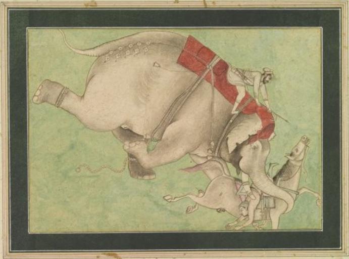 | Keywords: War elephant attacking a horse and rider.jpg Album of paintings and calligraphy Created in India 17th-18th centuries Date created 1600 Date created 1800 Former owner Ouseley Gore Sir 1770-1844 Subject Albums -- India -- 17th century LCTGM2 Albums -- India -- 18th century LCTGM2 Dimensions mm 600 x 445 box Extent 27 leaves Other Identifier MS Ous Add 171 shelfmark Abstract An album of 25 Indian paintings with one page of pencil sketches Note Disbound References Bodleian Persian etc Cat 1894 Provenance From the collection of Sir Gore Ouseley 1770-1844 1600 http //warfare uphero com/Moghul/18thC/18thC_Albums htm author PD-old-100 Uploaded with UploadWizard Elephantidae |