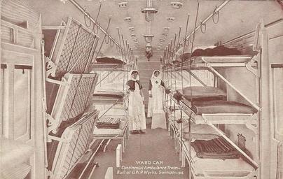 | Keywords: gwr great western railway greatwesternrailway ward car wardcar continental ambulance train continentalambulancetrain 1915 swindon england ww1 injured wounded hospital nurse medical beds bunks monochrome pastel Built at G.W.R. Works, Swindon 1915 Built at G.W.R. Works, Swindon 1915 |