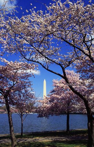 Keywords: washington dc japanese cherry trees blooms blooming flowering beautiful washington monument colorful spring sky lovely nature outside city cities