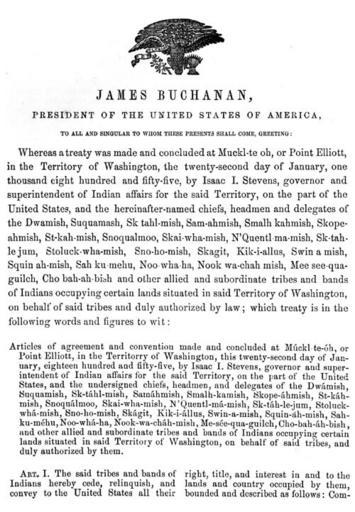 Keywords: Washington edu Treaty betw. US & Duw. Suq. & other allied, 22Jan1855, Dwamish-3.JPG image of document page 3 of 10 ; Treaty between the United States and the Duwamish Suquamish and other allied and subordinate tribes of Indians in Washington Territory January 22 1855 ratified April 11 1859 p 3 http //content lib washington edu/cgi-bin/viewer exe CISOROOT /imlsmohai CISOPTR 2699 CISOMODE thumb University of Washington Library Digital Collections 1859 U S Government U S Government document; also pre-1923 publication There are images for document pages 1 3 6 10 of 10 PD-USGov Original upload log en wikipedia Magnus Manske CommonsHelper page en wikipedia Washington_edu_Treaty_betw _US_ 26_Duw _Suq _ 26_other_allied 2C_22Jan1855 2C_Dwamish-3 JPG 2006-08-05 03 05 GoDot 500×722× 110873 bytes <nowiki>author U S date 1859; source University of Washington Libraries UW Digital; descr p 3 Treaty of Point Elliott 1855 PD-US </nowiki> Law of the United States 1855 in the United States Treaties with the United States as a party 1855 texts Mukilteo Washington Washington state in the 1850s Indigenous peoples of North America |