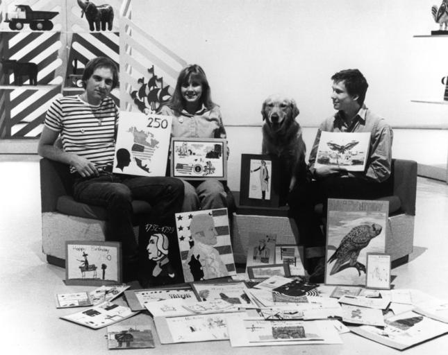 Keywords: north east northeast iconic memorable event nostalgic development community blue peter bluepeter birthday card competition birthdaycardcompetition george washington georgewashington blue peter dog bluepeterdog black and white photogarph blackandwhitephotogarph social history socialhistory industrial heritage industrialheritage abstract digital image digitalimage coal industry coalindustry traditional new industry newindustry nissan car factory nissancarfactory industry washington development corporation washingtondevelopmentcorporation 1964 washington new town newtown washington family washingtonfamily first president firstpresident united states of america unitedstatesofamerica president george washington presidentgeorgewashington ancestor tyne & wear tynewear city of sunderland cityofsunderland town north east of england northeastofengland united kingdom unitedkingdom fascinating interesting unusual washington heritage festival 2013 washingtonheritagefestival2013 washington heritage collection - visits and events washingtonheritagecollectionvisitsandevents bbc television 250th anniversary of the birth of george washington 250thanniversaryofthebirthofgeorgewashington 1982 paper dog room drawings shelf toys wall furniture handwriting number floor artificial light artificiallight shadow men woman seated presenters blackandwhite monochrome performer musician people black and white This is a photograph of a Birthday Card Competition held by Blue Peter of the BBC in celebration of the 250th Anniversary of the Birth of George Washington in 1982. Reference: 5417/187/1 This collection of images has been assembled in support of the Washington Heritage Festival 2013. The celebration of Washington brings together a variety of different themes. Washington is a Town in the City of Sunderland, Tyne & Wear. It is traditionally associated with Coal Industry, and notably known as the home of the Washington Family, ancestors of the First President of the United States George Washington. However, in 1964 Washington was designated a New Town and drastically changed. With the introduction of new industry such as the Nissan Car Factory Washington experienced a huge redevelopment in both its economy and community. These Photographs are taken from the Records of the Washington Development Corporation; held at Tyne & Wear Archives. The records document this change in industry, landscape and community in Washington between 1964 & 1988, and consist of many photographs. For more information on the Washington Heritage Festival, 21st September 2013 please click here. (Copyright) These images are Crown Copyright. We're happy for you to share these digital images within the spirit of The Commons. Please cite 'Tyne & Wear Archives & Museums' when reusing. Certain restrictions on high quality reproductions and commercial use of the original physical version apply though; if you're unsure please email archives@twmuseums.org.uk This is a photograph of a Birthday Card Competition held by Blue Peter of the BBC in celebration of the 250th Anniversary of the Birth of George Washington in 1982. Reference: 5417/187/1 This collection of images has been assembled in support of the Washington Heritage Festival 2013. The celebration of Washington brings together a variety of different themes. Washington is a Town in the City of Sunderland, Tyne & Wear. It is traditionally associated with Coal Industry, and notably known as the home of the Washington Family, ancestors of the First President of the United States George Washington. However, in 1964 Washington was designated a New Town and drastically changed. With the introduction of new industry such as the Nissan Car Factory Washington experienced a huge redevelopment in both its economy and community. These Photographs are taken from the Records of the Washington Development Corporation; held at Tyne & Wear Archives. The records document this change in industry, landscape and community in Washington between 1964 & 1988, and consist of many photographs. For more information on the Washington Heritage Festival, 21st September 2013 please click here. (Copyright) These images are Crown Copyright. We're happy for you to share these digital images within the spirit of The Commons. Please cite 'Tyne & Wear Archives & Museums' when reusing. Certain restrictions on high quality reproductions and commercial use of the original physical version apply though; if you're unsure please email archives@twmuseums.org.uk