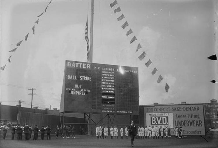 | Keywords: Washington Park 1915.jpg en Flag raising at Washington Park in Brooklyn New York April 1915 Teams shown on scoreboard are for the Federal League which only lasted from 1914-1915 The Brooklyn Tip Tops finished seventh out of eight teams in 1915 The Library of Congress http //loc gov/pictures/resource/ggbain 18840/ Bain News Service 1915-04-10 LOC-image ggbain 18840 PD-Bain PD-US Washington Park baseball 1915 in Major League Baseball Baseball scoreboards Brooklyn Tip-Tops 1915 in New York City |