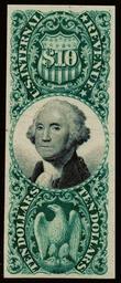 | Keywords: Washington revenue $10 1872 issue R149P4.jpg U S Revenue stamp 10 issue of 1872 Scotts R149P4 <br>This third issue stamp is similar to the second issue with the following changes Denomination is ten dollars instead of five and the lower portion depicts an Eagle instead of a Shield Issued in 1872 United States Government; Dept Internal Revenue Government commissioned printing by Butler Carpenter of Philadelphia; Restoration and imaging by Gwillhickers other versions thumb 164px left Second issue stamp with similar design PD-USGov Uploaded with UploadWizard Revenue stamps of the U S Internal Revenue Service Stamps of the United States 1870-1880 George Washington on stamps Revenue stamps of the U S Internal Revenue Service; 1871 third issue of U S revenue stamps 10 denomination 06 31 15 October 2014 UTC Washington revenue 10 1872 issue R149P4 jpg |