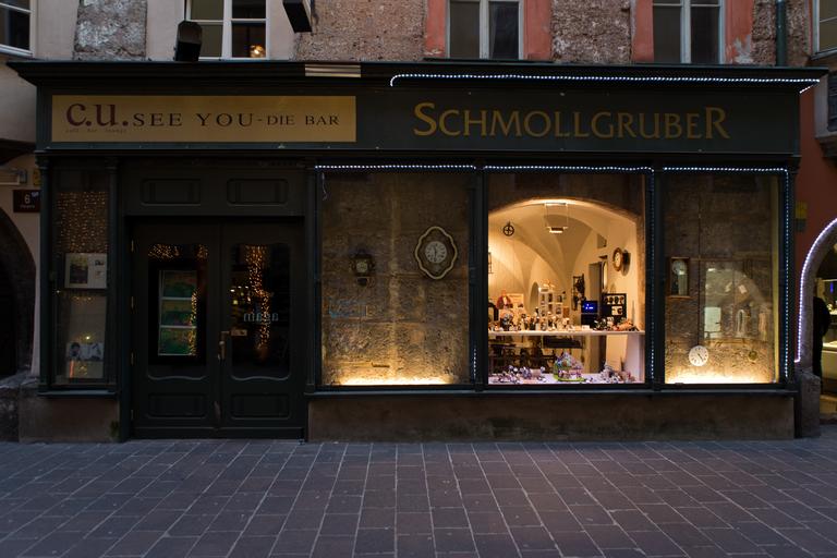 Keywords: watchmaker shop window architecture historic after dark innsbruck austria