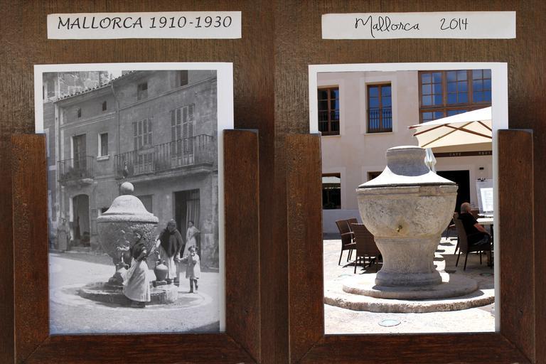 Keywords: water basin water column old new comparison water fountain mallorca spain