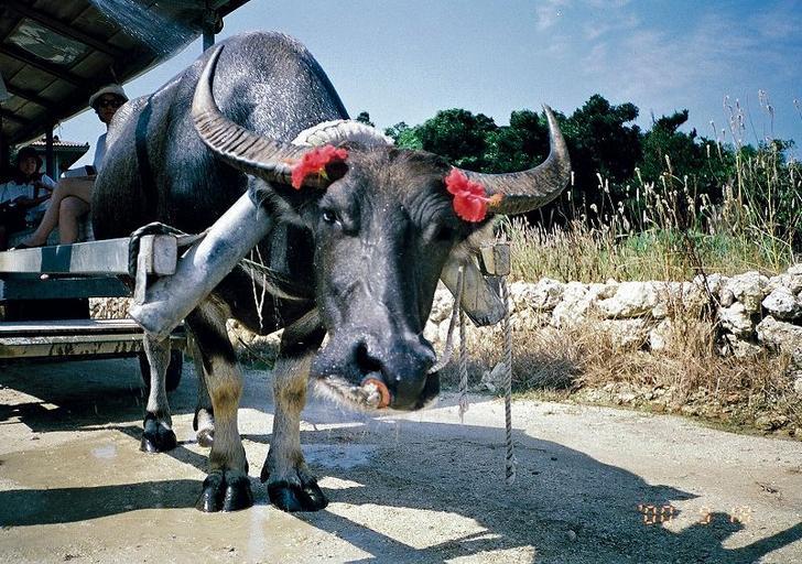 | Keywords: Water buffalo Taketomijima.jpg A water buffalo for buffalo-car at Taketomi-jima Taketomi-island Okinawa Japan this is a picture that I the author 田英 took by myself in 18th September 2000 2007-03-18 own assumed 田英 Water buffaloes of Japan Taketomijima Ox-drawn wagons in Japan |