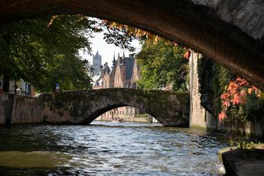 Keywords: water channel bridges bruges hole river landscape reflection city europe autumn trees