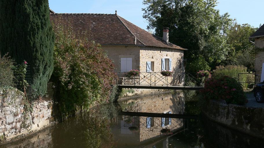 Keywords: water courses reflections river reflection house blue sky water morvan mill engilbert