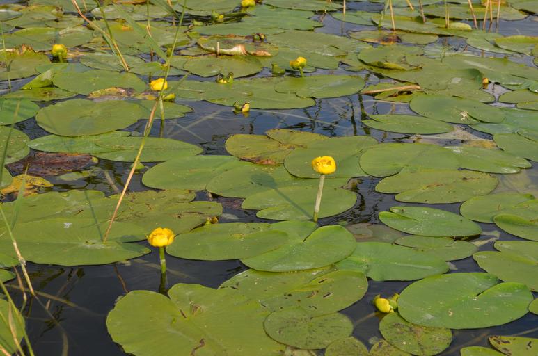 Keywords: water lilies aquatic plants yellow nuphar lutea lake rose water nature blossom bloom green