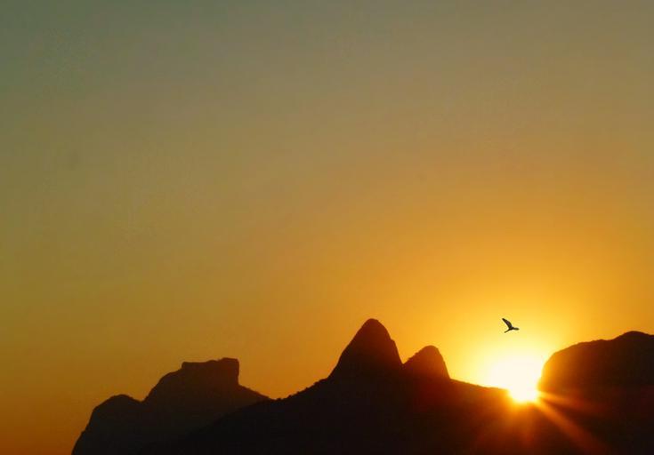 Keywords: water mar orla ocean beach litoral rio de janeiro brazil bird heron tropical birds rocks rock island west sunset against light urban city birds landscape mountains nature serra depth contemplation rest visual holidays ride