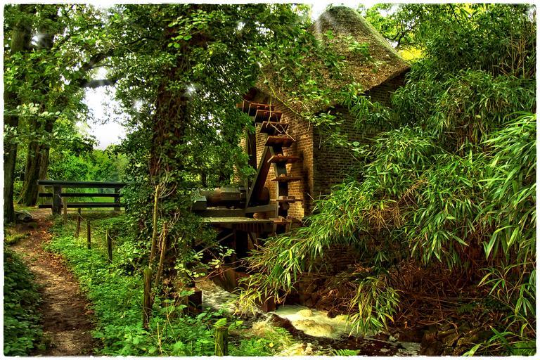 Keywords: water mill nature waterwheel past wood water green transient transience plant brown old river bach