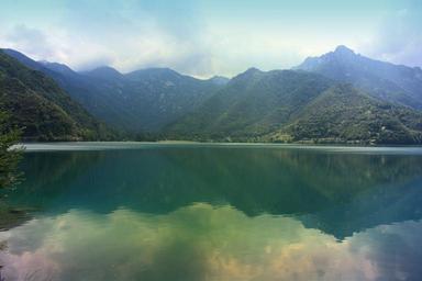 Keywords: water mirroring mountains lake ledro italy nature landscape reflection clouds water surface