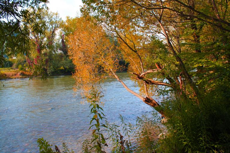 Keywords: water mur waters graz austria tree styria yellow river run water surface