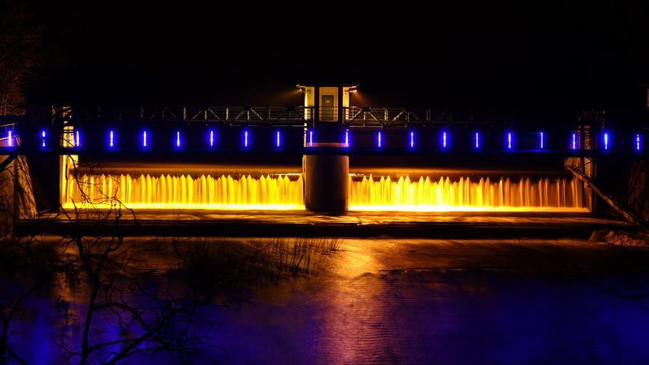 Keywords: water night reservoir mirroring on the water abendstimmung darkness reflection lichtspiel haltern am see color glow