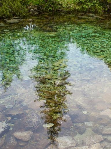 Keywords: water pleso reflection mirror tree stones peace of mind