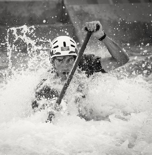 Keywords: water rapids man male paddle oar wet intense river nature black and white