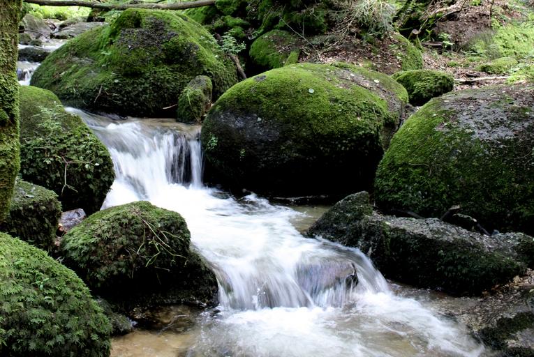 Keywords: water stones moss waterfall nature river rock fluent rest wet silent