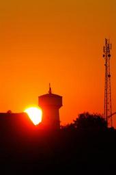 Keywords: water tower radio tower sunset silhouette orange sun madagascar morondava landscape tropical hot scenic majestic sky