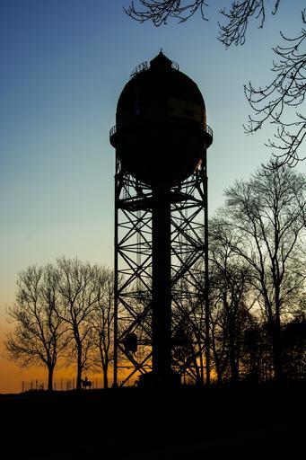 Keywords: water tower water supply dortmund lanstrop egg grevel sunset landscape dusk golden light atmospheric abendstimmung romantic horizon light nature sun shadow trees shrubs evening lichtspiel mood